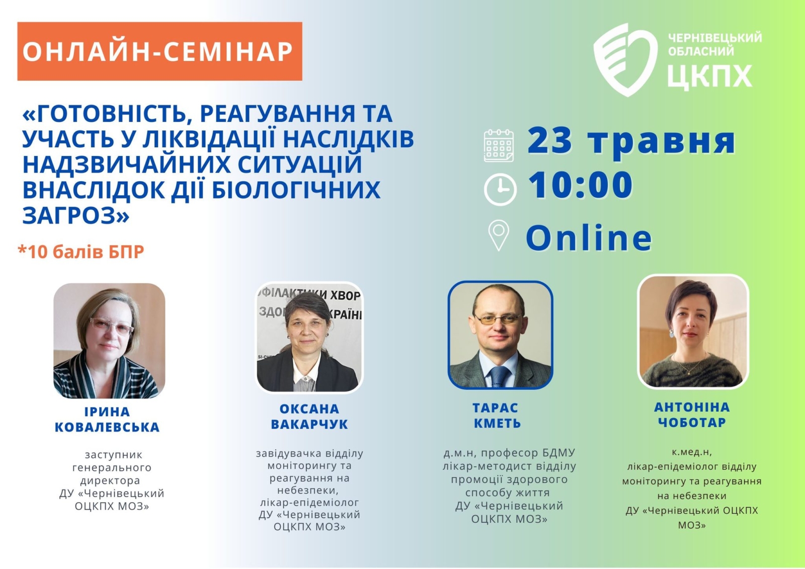 Онлайн-семінар «Готовність, реагування та участь у ліквідації наслідків надзвичайних ситуацій внаслідок дії біологічних загроз»