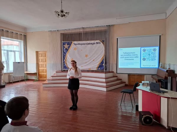 Фахівцем нашого центру к.мед.н. Пудяк Христиною було проведено серію лекцій для учнів старших класів Чернівецьких гімназій та ліцеїв (ліцей № 11 «Престиж», гімназія № 14, ліцей № 12 «Ювілейний», багатопрофільний ліцей для обдарованих дітей та ліцей № 16 ім. Ю. Федьковича) на тему: «Туберкульоз: що треба знати, щоб вберегти себе та близьких». Метою заходів було підвищення обізнаності молоді про туберкульоз, розвінчання поширених міфів щодо цієї хвороби та подолання стигми і дискримінації, які часто супроводжують людей, хворих на туберкульоз. Ці просвітницькі лекції були проведені в рамках місяця обізнаності щодо туберкульозу, що є частиною глобальної кампанії Всесвітньої організації охорони здоров’я щодо зниження рівня смертності від туберкульозу та підтримки здоров’я громад.