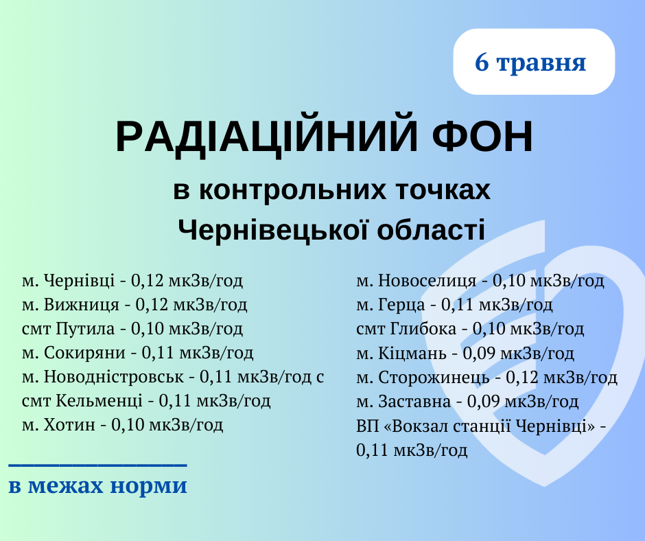 Радіаційний фон у Чернівецький області станом на 6 травня