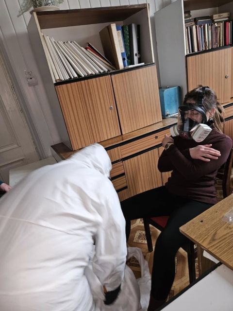Під час занять учасники опановували алгоритм дій для забезпечення максимальної ефективності та безпеки під час використання засобів індивідуального захисту в умовах підвищеного ризику. Особливу увагу приділили дотриманню послідовності дій, що є важливим для запобігання можливому зараженню або поширенню небезпечних агентів.